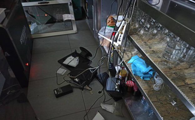 Los robos se produjeron de madrugada y con apenas una hora de diferencia. En torno a las 4.40 horas, los asaltantes se adentraron en la pizzería y buscaron la caja fuerte, que se encontraba en una habitación. Una hora más tarde, los ladrones repitieron sus pasos en la cafetería Costa Café, donde entraron rompiendo una ventana. Según explicaron fuentes cercanas al caso, las cámaras de seguridad de este último local captaron a un hombre que se acercaba a la cámara fuerte, haciéndose con el botín en apenas un minuto.